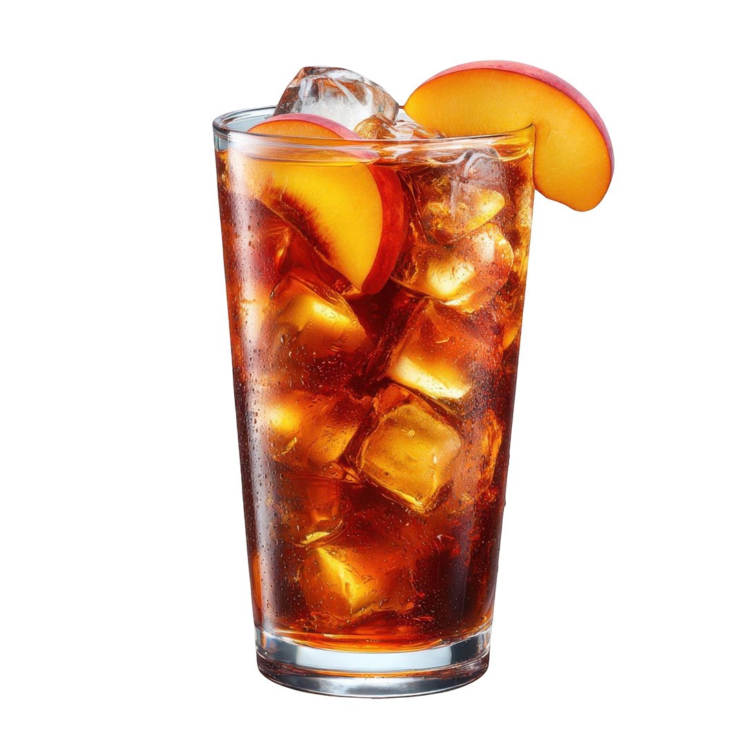 Iced tea with sweet peach flavor.